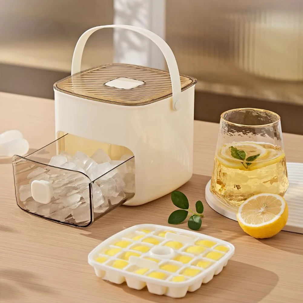 Portable Ice Maker with Handle with Storage Drawer Countertop Ice Cube Maker Compact Ice Maker Machine for Home Office Household & Outdoor Use Features: 1.Stylish Design: Boasting a sleek appearance with diverse colors, this ice maker adds a touch of elegance to your kitchen or dining table. It combines practicality and beauty, becoming a scenic view in any setting. 2.Portable Handle Design: The ice maker machine is lightweight and portable, featuring a convenient handle that makes it easy to enjoy refreshing ice cubes during travel, picnics, camping, or parties. 3.Press-to-Release Ice Tray: With its innovative press design, our ice maker with handle allows you to release ice cubes with a simple press, saving time and effort with an exceptional user experience. 4.Food-Grade Safe Materials: Made from food-grade silicone and plastic, our countertop ice cube maker ensures clean, pure ice cubes for safe use, offering peace of mind with every serving. 5.Multi-Purpose Ice Bucket: Not just for home use, this compact ice maker machine is perfect for restaurants, cafes, bars, and other commercial spaces, providing quick ice-making to enhance efficiency. Specification: Origin: Mainland China Product size: 150.00x150.00x140.00mm/5.91x5.91x5.51inch Ice cream tool type: ice cream box Material: plastic Note: Due to different monitor settings and lighting conditions, the actual color of the item may vary slightly from the pictures. Thanks for your understanding! Please allow a 1-2 cm difference in measurements due to manual measuring.